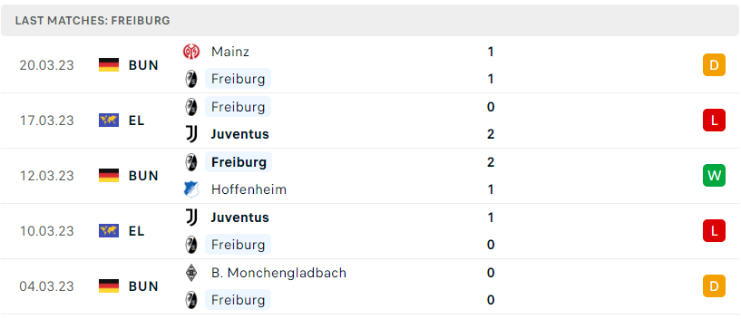 Phong độ của Freiburg