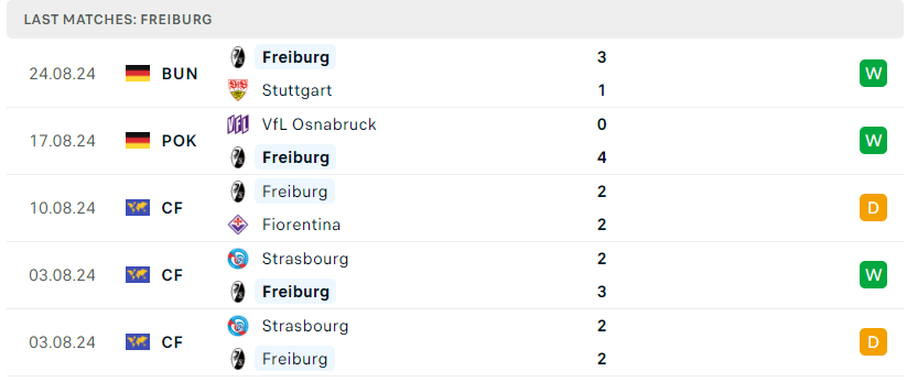 Phong độ của Freiburg