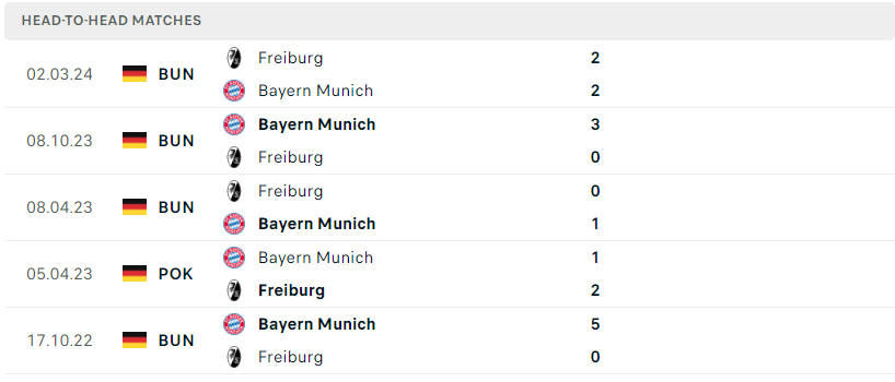 Thành tích đối đầu của Bayern Munich vs Freiburg