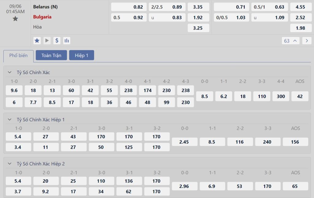 Soi kèo tài xỉu Belarus vs Bulgaria