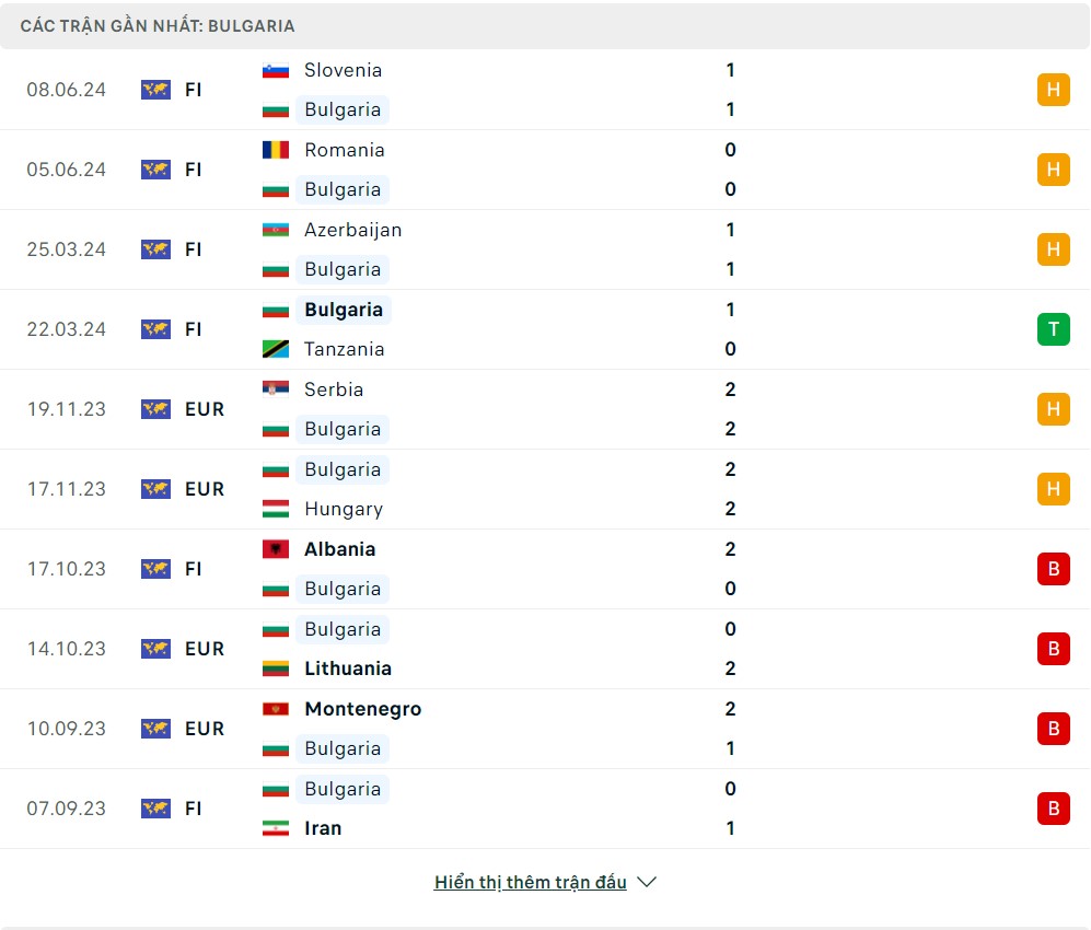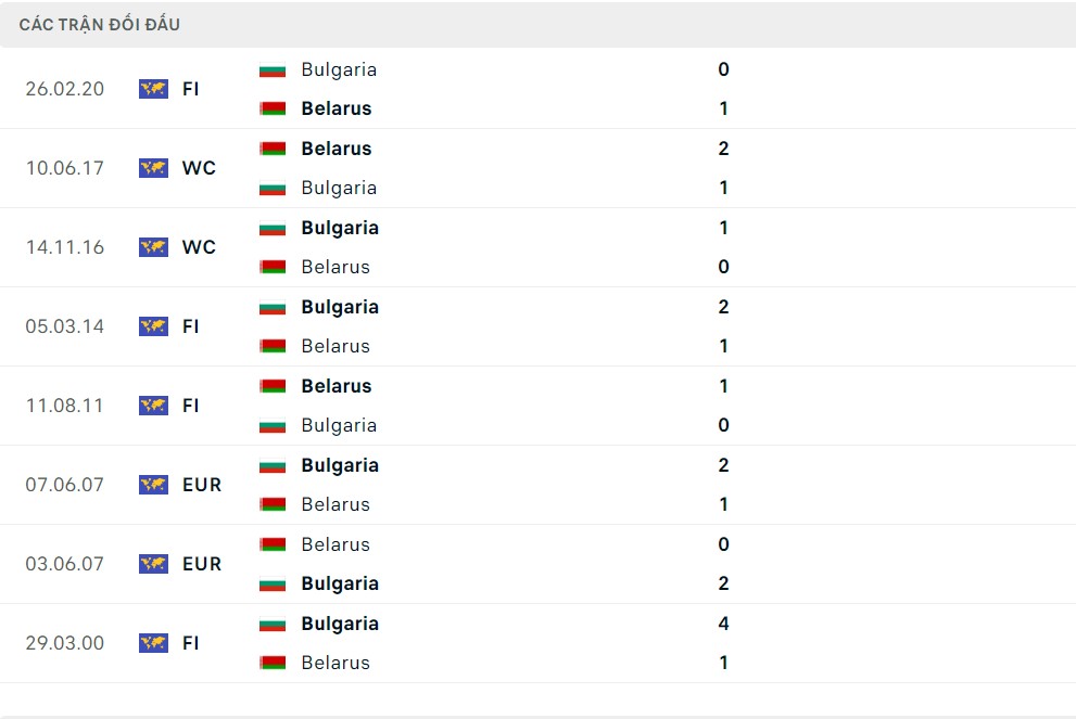 Lịch sử thi đấu của Belarus vs Bulgaria