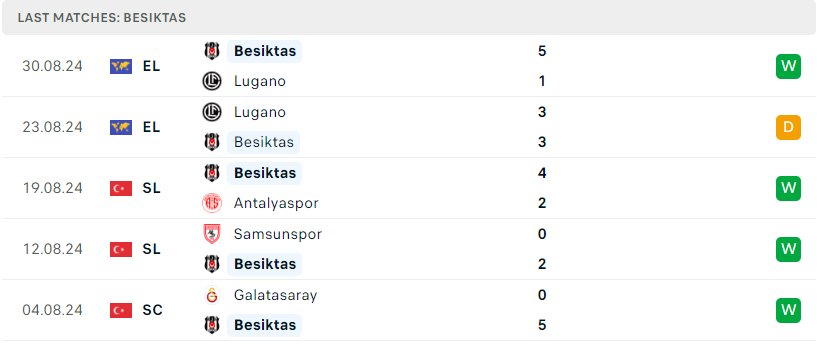 Chức vô địch cup quốc gia mùa giải 2023/24 vừa qua là bàn đạp quan trọng để Besiktas tiến vào cuộc đua SuperLig năm nay với nhiều hy vọng. Trên thực tế, màn trình diễn của đoàn quân Bronckhorst sau 5 trận đấu đầu mùa là hết sức ấn tượng. Không chỉ chơi tốt tại giải quốc nội với tổng cộng 3 chiến thắng, Besiktas còn xuất sắc đánh bại Lugano để góp mặt tại vòng bảng Europa League năm nay. Đụng độ đối thủ khó chịu Sivasspor sẽ là bài kiểm tra cần thiết cho tham vọng của họ ở mùa này.