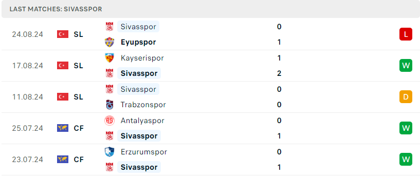Bên phía kia, Sivassspor cũng vừa phải nhận thất bại đầu tiên ở mùa giải năm nay bằng trận thua tối thiểu trước tân binh Eyuspor. Thất bại ngay trên sân nhà này đã phơi bày một thực tế rằng Sivasspor vẫn chưa có nhiều sự tiến bộ so với mùa giải trước. Dù đã có một khởi đầu không quá tệ, nhưng trận thua vừa qua cho thấy họ vẫn còn nhiều điều phải cải thiện nếu muốn cạnh tranh ở nhóm trên. Chuyến làm khách trước Besiktas vào cuối tuần sẽ là thử thách không nhỏ cho Sivasspor.