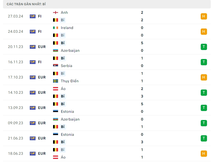 Bỉ xuất sắc góp mặt ở VCK Euro 2024 với vị trí nhất bảng F ở vòng loại với thành tích bất bại với 6 chiến thắng và 2 hòa, trong bảng đấu có sự góp mặt của các đối thủ khó chịu như Áo hay Thụy Điển, hàng công của Bỉ được đánh giá cao với 22 bàn thắng có được sau 8 trận đấu, bên cạnh hàng thủ thi đấu ấn tượng khi chỉ nhận 4 bàn thua, ở 5 trận gần nhất hàng công của Bỉ mang về 8 bàn thắng và hàng thủ nhận 3 bàn thua.