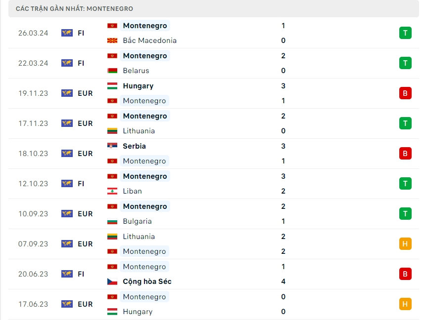 -Phong độ Montenegro