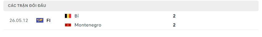 Lịch sử thi đấu của Bỉ vs Montenegro