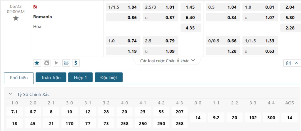 Soi kèo Châu Á, kèo chấp Bỉ vs Romania