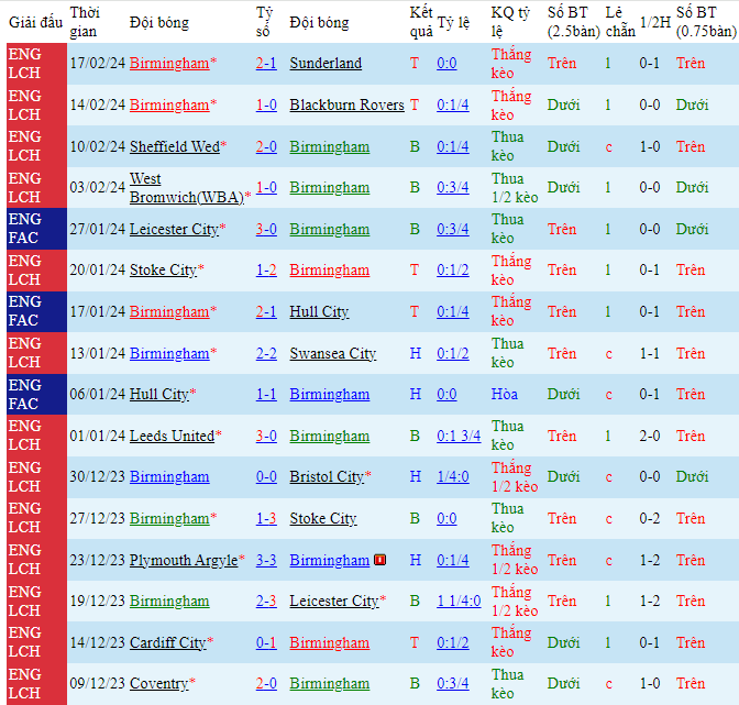-Phong độ Birmingham