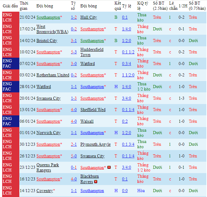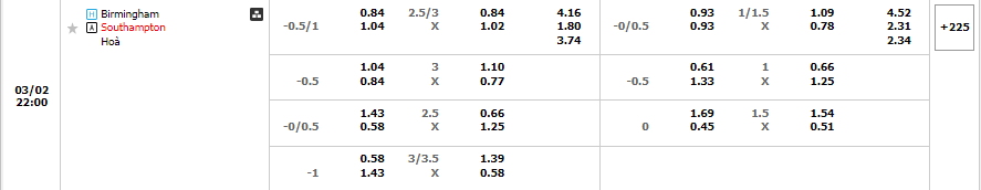 Kèo châu Âu cũng đang là sự ưu thế cho các vị khách khi mức ăn của Southampton đang là 1.80 trong khi đó con số này của Birmingham đã là 4.16. Một khoảng thời gian vô cùng khó khăn và hơn lúc nào hết Southampton sẽ cần phải có được sự quyết tâm vươn lên cùng với đó là những giải pháp để đưa mình trở lại với guồng quay hiện tại. Các lợi thế đang có sẽ là cơ sở để họ có thể nghĩ đến một chiến thắng trước Birmingham ở trận đấu tới.