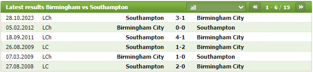 Lịch sử thi đấu của Birmingham vs Southampton