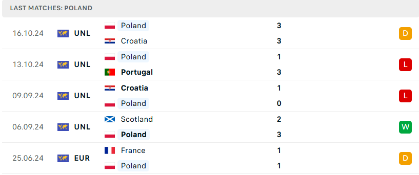 Bên kia chiến tuyến, bóng đá Ba Lan dường như đang có dấu hiệu chững lại khi liên tục trình diễn phong độ kém ấn tượng trong các giải đấu quốc tế gần đây. Tại Nations League cũng không ngoại lệ, khi họ chỉ giành được một chiến thắng trước Scotland trong 4 trận gần nhất và hiện đang xếp thứ 3 tại bảng đấu. Điều này cho thấy sự thiếu ổn định và khó khăn của Ba Lan trong việc tìm ra định hướng. Nếu không sớm tìm ra lời giải, họ chắc chắn sẽ gặp nhiều thách thức khi VL World Cup diễn ra vào tháng 3 năm sau.