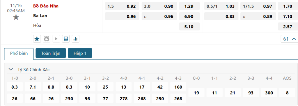 Soi kèo Châu Á, kèo chấp Bồ Đào Nha vs Ba Lan