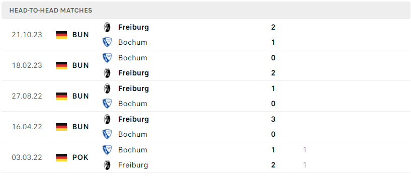 Mặc dù lịch sử đối đầu đang ghi nhận là sự vượt trội dành cho Freiburg, khi họ đã thắng đến 4/5 lần đụng độ gần nhất. Dù vậy, nhưng đó là câu chuyện của các mùa giải trước và với sự tiến bộ của đoàn quân Thomas Letsch vào lúc này thì một Freiburg là chưa đủ để làm khó được họ. Thậm chí, với lợi thế sân nhà và sự may mắn thì Bochum hoàn toàn có thể thành công rửa hận với trận thắng nghẹt thở.
