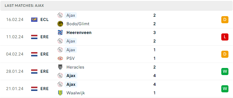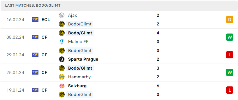 Phong độ đội bóng Bodo/Glimt vs Ajax
