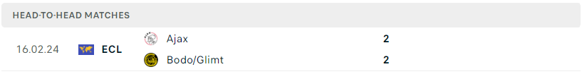 Thành tích đối đầu của Bodo/Glimt vs Ajax