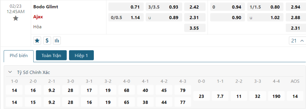 Kèo Châu Âu vẫn đang là sự nhỉnh hơn dành cho Ajax, khi mức ăn của họ đang là 2.31 trong khi con số này của đội chủ nhà là 2.42. Trong một trận đấu mà Bodo/Glimt được chơi trên sân nhà và họ cũng đang nắm giữ ưu thế trước trận lượt về thì rõ ràng đoàn quân Knutsen hoàn toàn có đủ lý do và điều kiện để khiến Ajax gặp khó và thậm chí phải nói lời chia tay đấu trường Conference League.