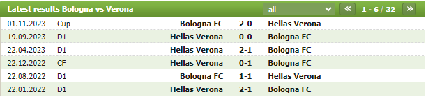 Bologna đã chạm mặt Verona tổng cộng 2 lần ở mùa giải năm nay và không có gì bất ngờ khi sự hiệu quả đã giúp cho đội chủ nhà chiếm ưu thế trước đối thủ của mình với 1 chiến thắng và 1 trận hòa. Đây là thời điểm mà Bologna đang rất quyết tâm cho việc cạnh tranh ở khu vực top đầu và họ sẽ không để lỡ một cơ hội như Verona để qua đó có thể thực hiện hóa mục tiêu mà mình đã đề ra.