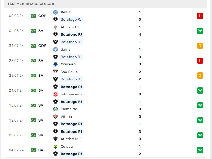 Ở lần chạm mặt gần nhất là màn đụng độ khép lại với chiến thắng 1-0 cho Botafogo và lần chạm mặt lần này Botafogo chắc chắn cũng đặt ra tham vọng có được chiến thắng trước đối thủ qua đó nắm bắt lợi thế, dù sẻ là chiến thắng không quá dễ dàng trước đối thủ.