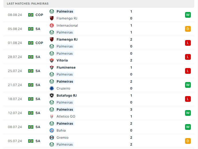 -Phong độ Palmeiras