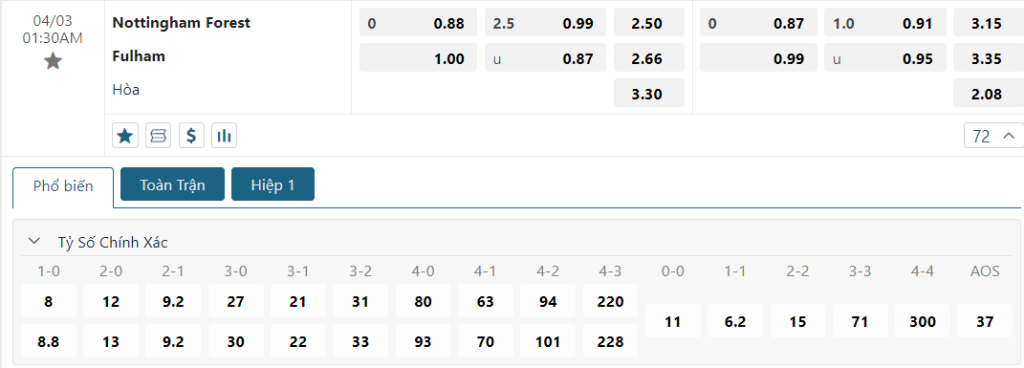 Dự đoán tỉ số trận đấu