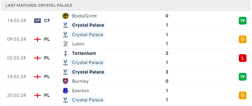 Phong độ của Crystal Palace
