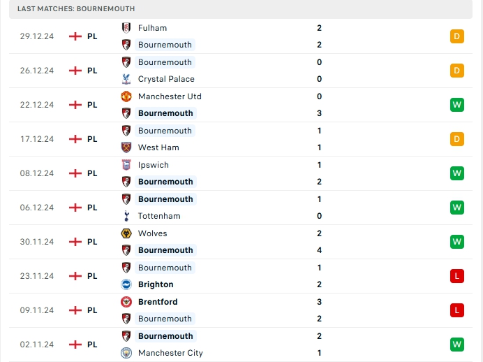 -Phong độ Bournemouth