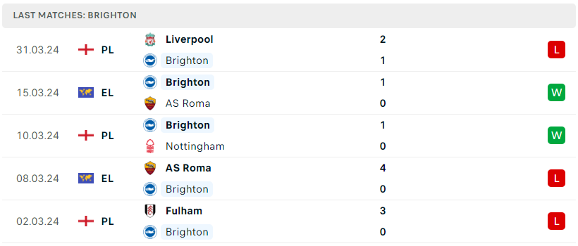 Ngày trở lại Premier League của Brighton sau khoảng nghỉ 2 tuần thực tế không mấy suôn sẻ khi họ đã để thua một cách tâm phục trước Liverpool. Mặc dù vậy, nhưng nhìn chung vẫn dễ dàng nhìn thấy những điểm sáng trong lối chơi của chim Mòng Biển kể từ khi họ bị loại khỏi sân chơi Europa League. Mùa giải mà đoàn quân De Zerbi gần như là không còn quá nhiều tia hi vọng trong cuộc đua top 5, vì thế một tâm lý thỏa mái rất có thể giúp Brighton sớm tìm lại hình ảnh quen thuộc.