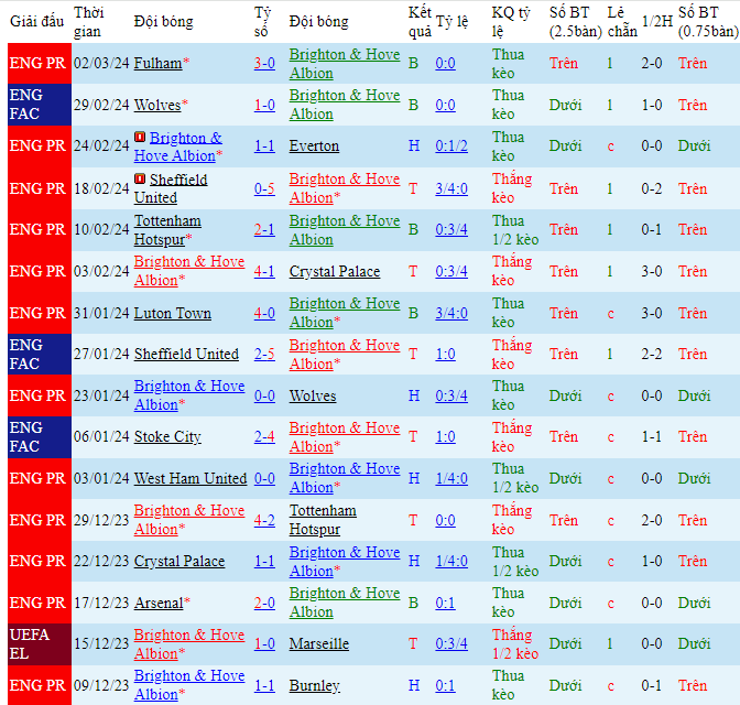 -Phong độ Brighton