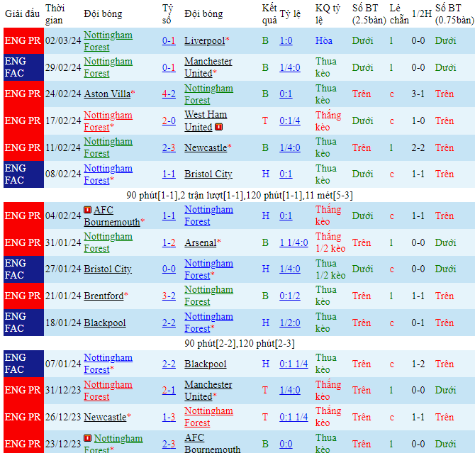 -Phong độ Nottingham Forest