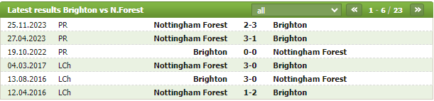 Lịch sử thi đấu của Brighton vs Nottingham Forest