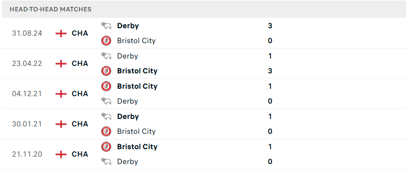 Lịch sử thi đấu cũng ghi nhận sự nhỉnh hơn dành cho đội chủ nhà, khi Bristol City đã thắng 3/5 lần gặp nhau gần nhất. Dù Derby County là một đối thủ không dễ chịu, nhưng với phong độ thăng hoa hiện tại của The Robins, cùng với những hạn chế của Derby trên sân khách, một thế trận quyết liệt có thể được dự đoán, và tỉ số 2-1 nghiêng về đội chủ nhà là kịch bản khả thi.