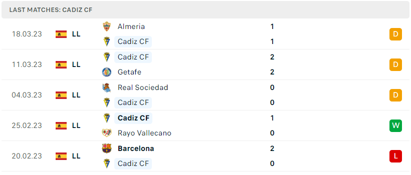 Phong độ của Cadiz CF