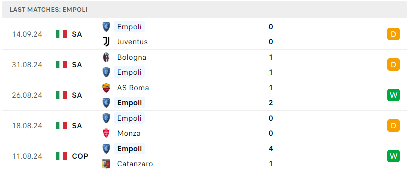 Phong độ của Empoli