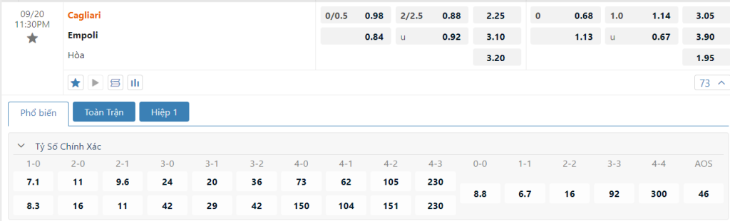 Soi kèo tỉ số Cagliari vs Empoli