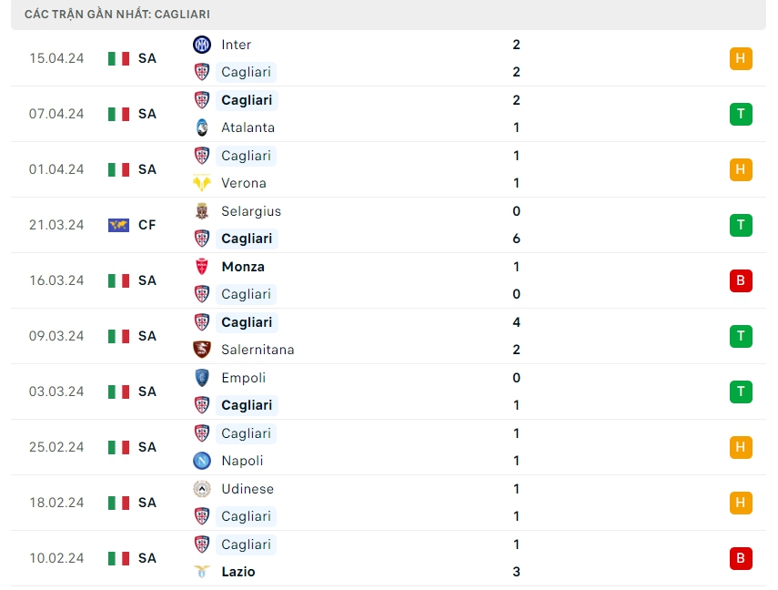 Cagliari vừa qua có trận hòa đầy ấn tượng trước Inter Milan, trận hòa vừa qua nối dài chuỗi 4 trận bất bại liên tiếp, và nó cũng giúp Cagliari vươn lên vị trí thứ 14 trên BXH với 31 điểm sau 32 vòng đấu và tạo được khoảng cách 4 điểm so với nhóm cầm đèn đỏ, hàng công của Cagliari ở mùa giải năm nay chỉ thi đấu ở mức tròn vai, điểm yếu của chủ nhà ở thời điểm này là việc hàng thủ thi đấu không tốt khi nhận đến 54 bàn thua và khiến họ gặp khó và chưa thể có được vị trí tốt hơn trên BXH.