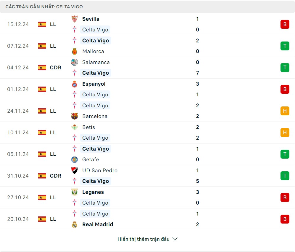 -Phong độ Celta Vigo