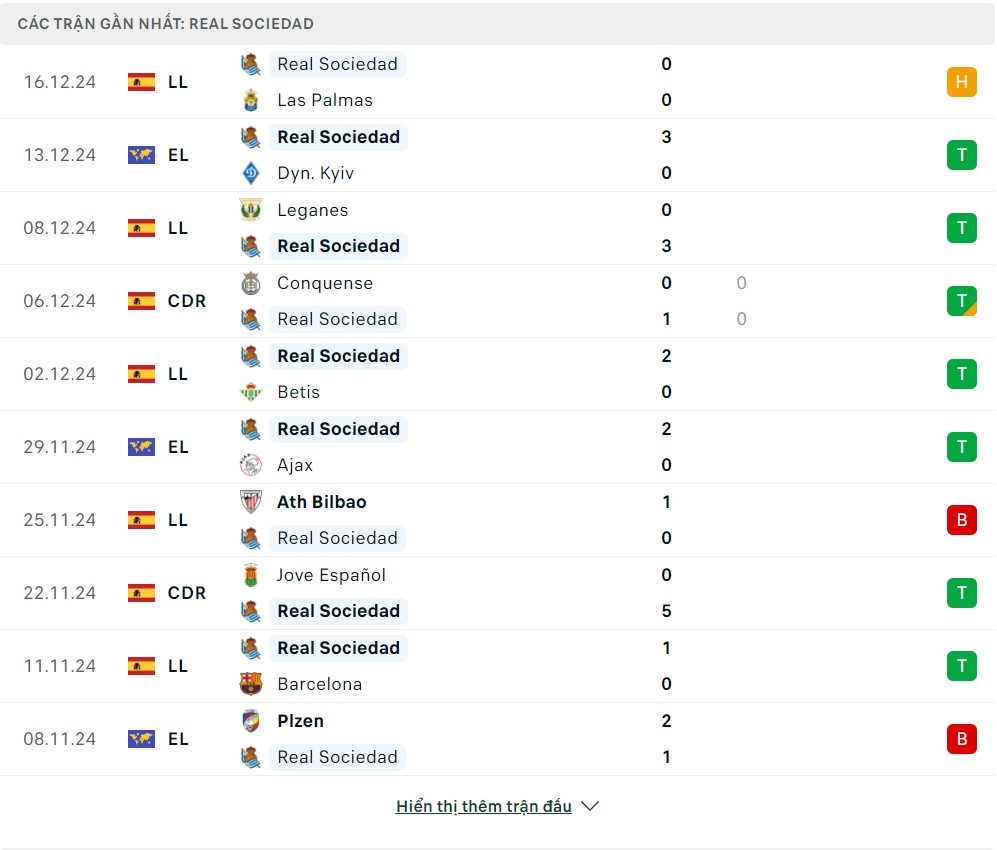 -Phong độ Real Sociedad