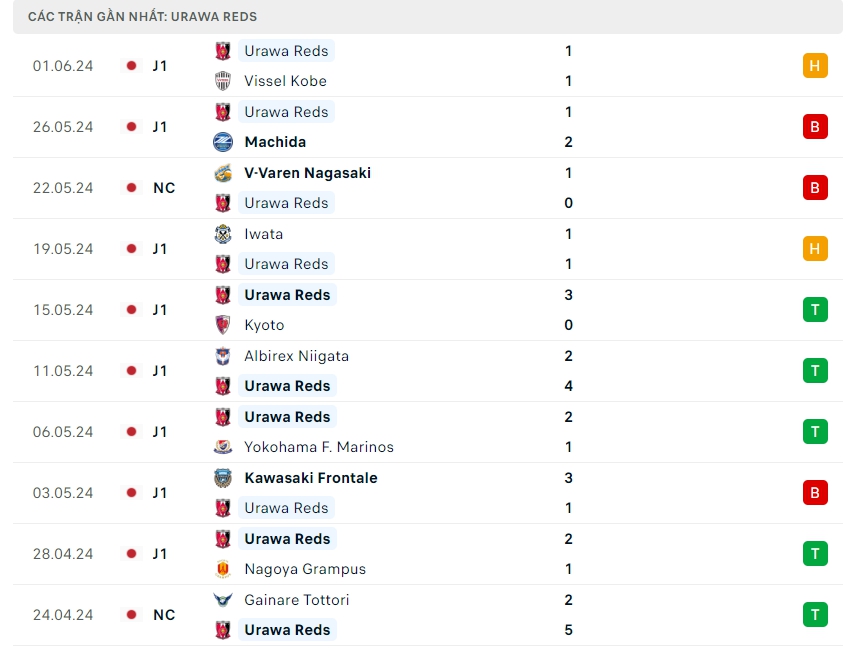 Phong độ đội bóng Cerezo Osaka vs Urawa Red Diamonds