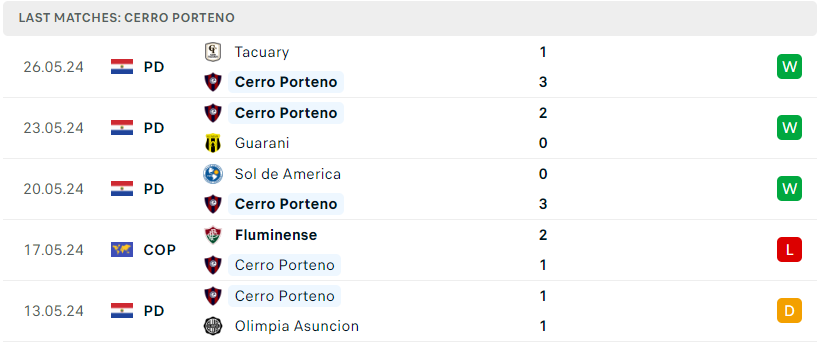 Phong độ của Cerro Porteno