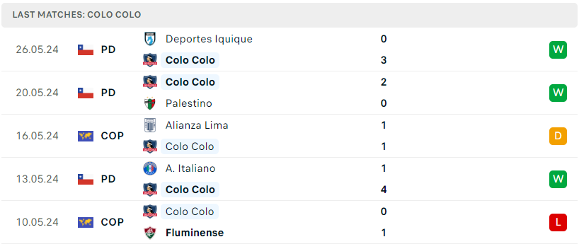 Bên phía kia, dù không được đánh giá quá cao nhưng Colo Colo vẫn là một trong hai ứng viên đi tiếp tại bảng đấu này. Thống kê cho thấy, sau 5 lượt trận họ cũng đã kịp mang về 5 điểm và đang có cùng điểm số với Cerro Porteno. Với sự tự tin là chiến thắng trước đối thủ ở lượt đi, đại diện Chile chắc chắn cũng sẽ muốn giành lấy 3 điểm ở màn tái đấu mang tính quyết định sắp tới. Dù vậy, nhưng chuyến đi sắp tới được dự báo sẽ chẳng hề dễ dàng gì.