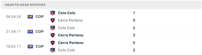 Trong quá khứ, hai đội cũng chỉ mới chạm trán 3 lần và trong số đó Cerro Porteno đã đến 2 lần giành chiến thắng. Với trận thắng ở lượt đi vừa qua thì có thể nói thực lực của đôi bên không còn nhiều sự cách biệt. Thế nhưng, với bản lĩnh của một đội bóng nhiều lần chinh chiến tại Copa, Cerro Porteno rõ ràng sẽ biết cách tận dụng sân nhà và đánh bại một Colo Colo với tham vọng soán ngôi.