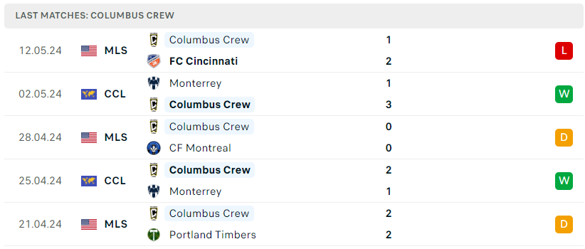 Phía đối diện, sau những màn trình diễn không quá tốt ở đầu mùa Columbus Crew lại đang cho thấy sự khởi sắc trở lại, tuy vậy nhưng họ không thể duy trì được điều này quá lâu khi vừa phải nhận thất bại trước FC Cincinnati ở vòng đấu trước. Hiện đoàn quân Wilfried Nancy đang đứng ở giữa BXH và vẫn đang trong hành trình lột xác. Dù lối chơi không có quá nhiều sự đổi mới, song vẫn mang lại những sự hiệu quả nhất định. Đụng độ CF Montreal được xem là bài test dành cho họ.