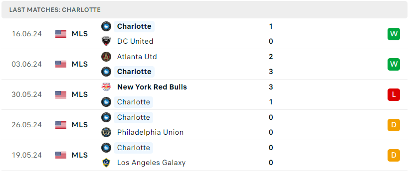 Phong độ đội bóng Charlotte FC vs Orlando City