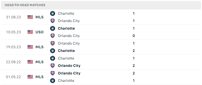 Thành tích đối đầu của Charlotte FC vs Orlando City
