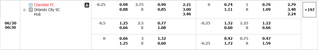 Bảng tỷ lệ kèo bóng đá trận đấu Charlotte FC vs Orlando City