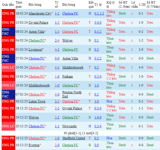 -Phong độ Chelsea