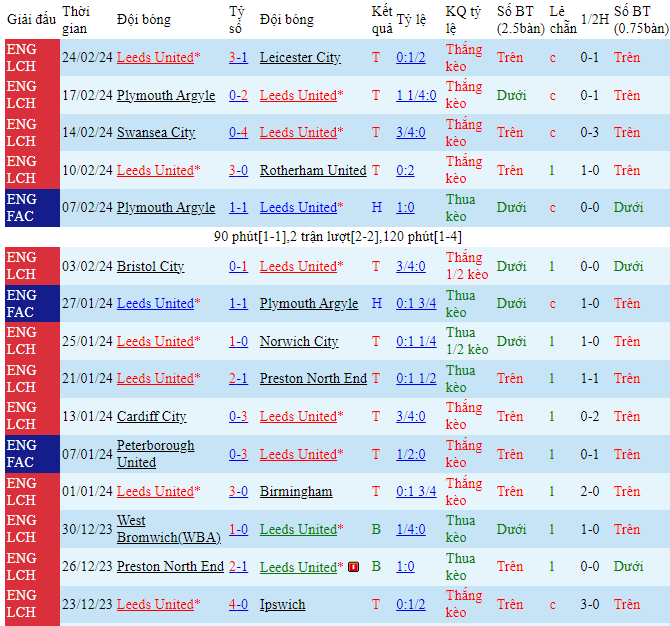 -Phong độ Leeds United