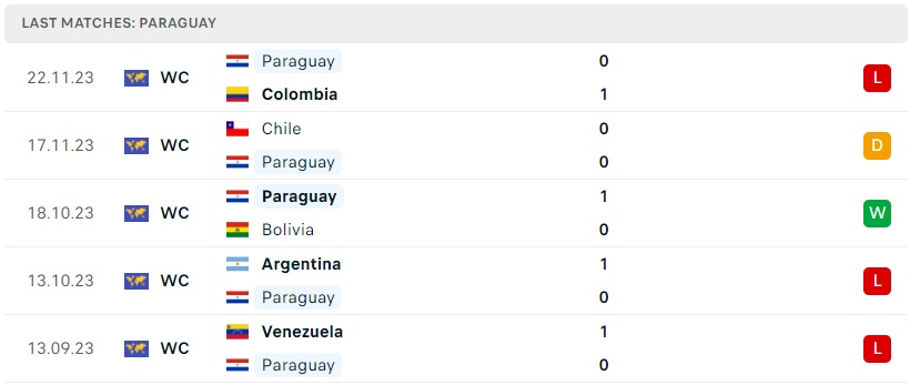Bên phía đối diện, một cái tên khác cũng chỉ kiếm về vỏn vẹn 5 điểm sau 6 lượt trận tại vòng loại World Cup là Paraguay. Dù vậy, nhưng dù sao thì đội tuyển này cũng không được đánh giá quá cao tại khu vực và việc thi đấu thất vọng cũng là điều dễ hiểu. Tại Copa America lần này, cơ hội đi tiếp của họ là không cao khi phải rơi vào bảng đấu có cả sự góp mặt của Brazil lẫn Colombia. Cửa đi tiếp là quá thấp và họ cần phải nổ lực nhiều hơn nữa nếu muốn để lại dấu ấn đặc biệt nào đó.