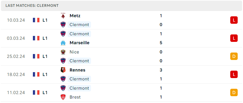 Không nằm ngoài dự đoán, Clermont tiếp tục thi đấu mờ nhạt và phải ôm hận ra về trong trận “chung kết ngược” với Metz cuối tuần trước. Càng bước vào giai đoạn quan trọng của mùa giải, đoàn quân Pascal Gastien càng tỏ ra cực kỳ yếu kém và gần như chẳng cho thấy bất kỳ sự khởi sắc nào trong cuộc chiến trụ hạng. Họ hiện chỉ sở hữu 17 điểm và kém vị trí an toàn lên đến 8 điểm. Nếu cứ thi đấu với phong độ bết bát như hiện tại, Clermont sẽ sớm trở thành cái tên đầu tiên phải xuống hạng ở mùa giải này.