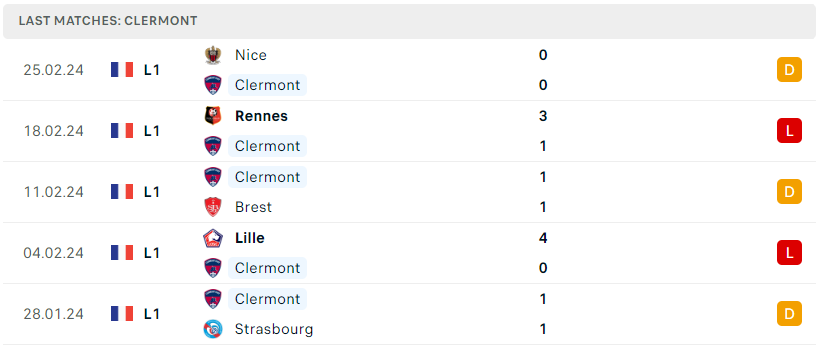 Phong độ của Clermont